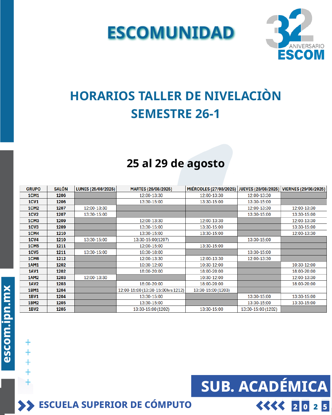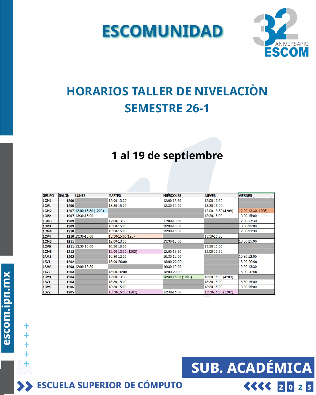 ESCOM Te esperamos en el turno y grupo que te fue asignado.