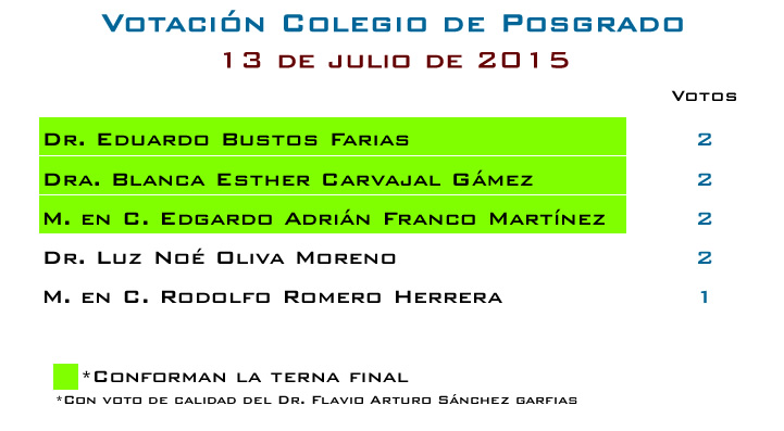 Considerando que el colegio de profesores de posgrado de la Escuela Superior de Cómputo, en sesión extraordinaria celebrada el 20 de abril de 2015, con fundamento en lo dispuesto en los artículos, 168, segundo párrafo, 174, 177 y 179, tercer párrafo, del Reglamento Interno, y por aplicación análoga 180, 181, 205, 207 y 264, fracción IV, del mismo ordenamiento, así como 86 del Reglamento de Estudios de Posgrado, acordó emitir la siguiente: