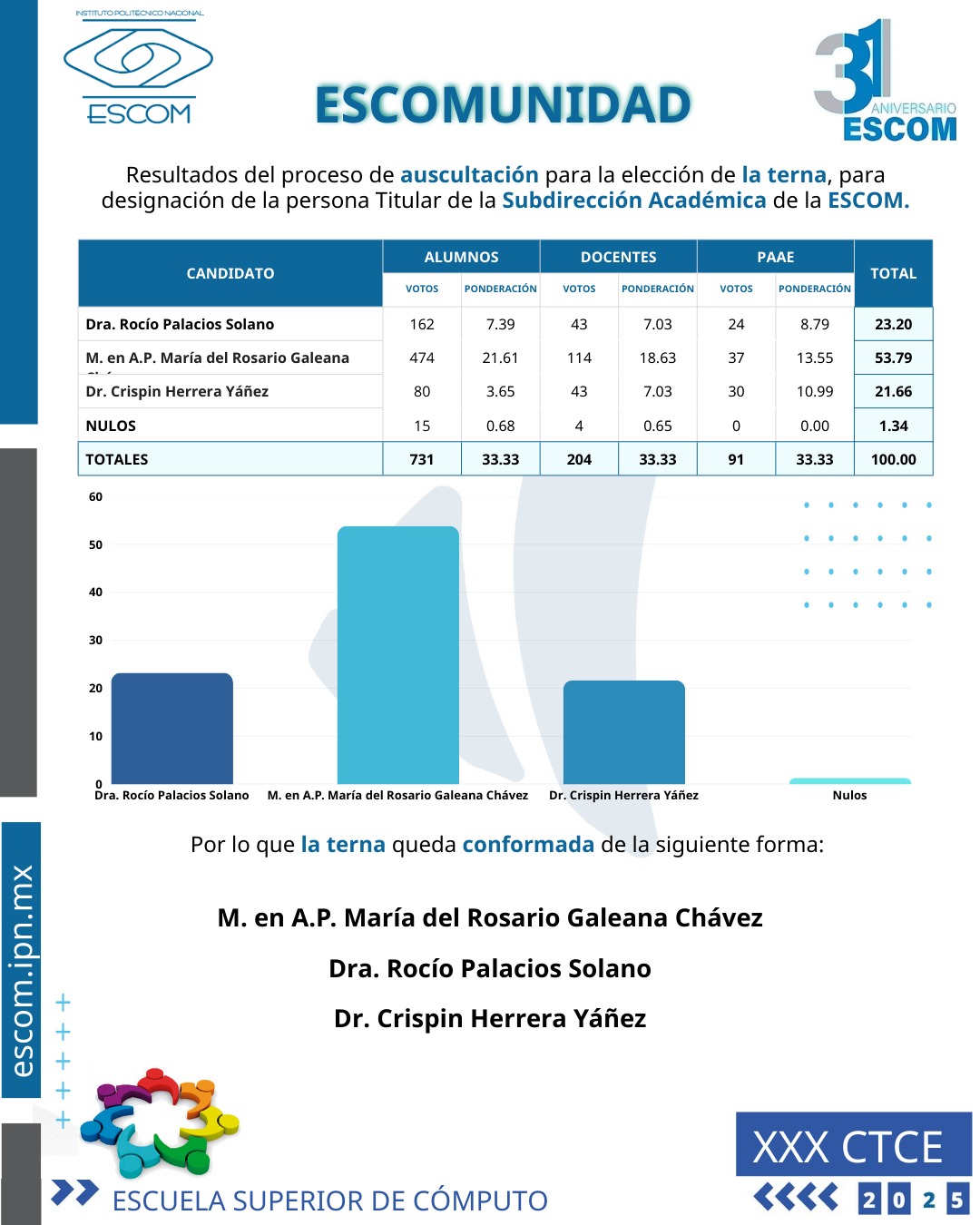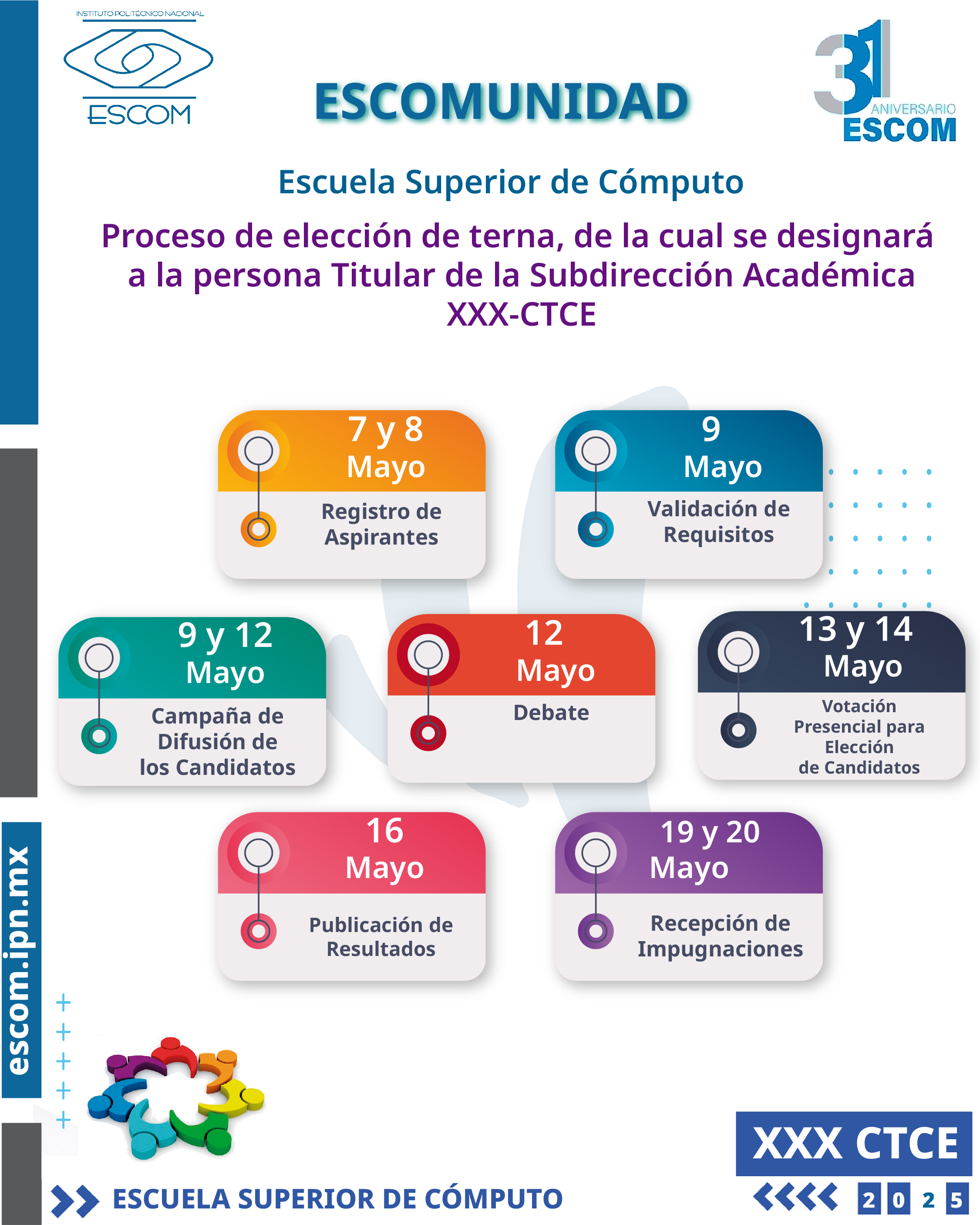 | 16 de mayo de 2025 | Conteo de votos y definición de la terna | Sala de Consejo de la ESCOM. 9:00 hrs |