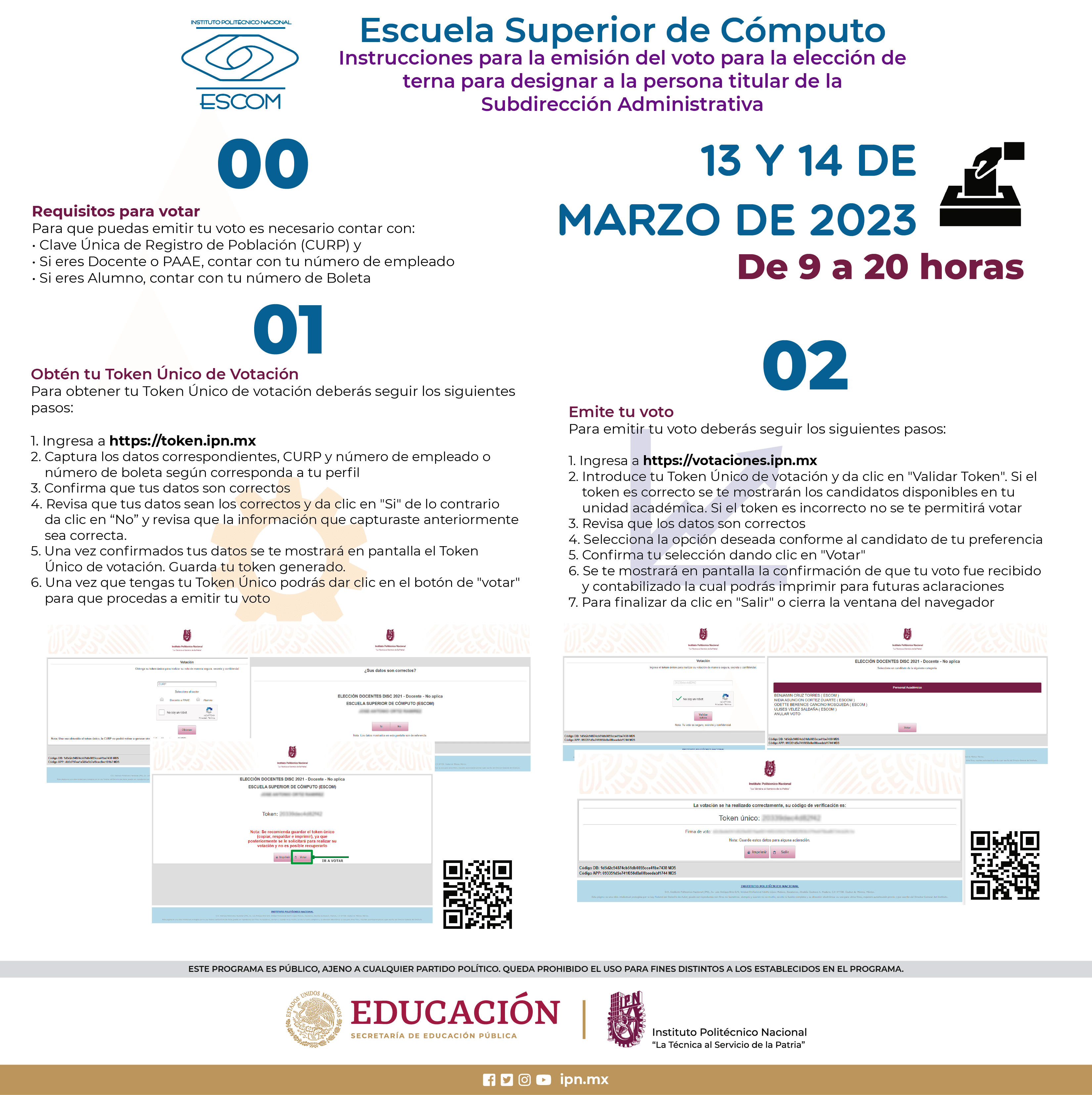 El Consejo Técnico Consultivo Escolar de la Escuela Superior de Cómputo, convoca a los miembros de la Comunidad Politecnica a participar en el proceso de elección de terna, de la cual se designará a la persona titular de la Subdirección Administrativa de nuestra unidad académica, bajo las siguientes bases: